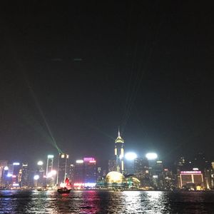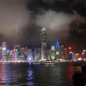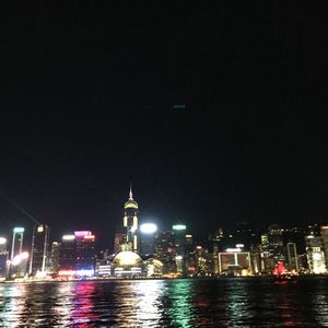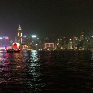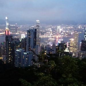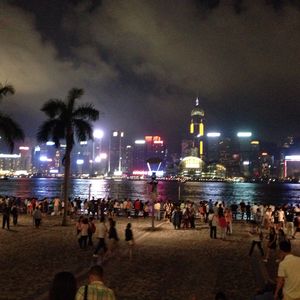 ビクトリアハーバーの夜景がすごくキレイで、ガイドさんもこんなに晴れているのは珍しいです、と言っていました。