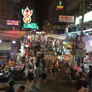 ピックアップは離れていたホテルでしたので大変でした。オープントップバスは参加者全員が2階の席。看板の近さに興奮。竹で出来た足場にびっくり。女人街の探索もあっという間の時間でした。