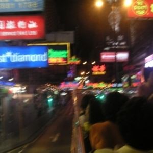 街中のネオンの看板を通りぬけるのも良かったですが、出発してすぐの香港島の夜景を見ながらプロムナード沿いの道を走ったり、女人街散策後、ホテルに送ってくれるのもそのままオープントップバスだったので、マンション群の夜景の中、高速道路でホテルまで約20分のみちのりもすごく得した気分で、もっと乗っていたいと思うほどでした。