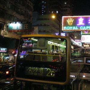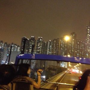 夜景のきれいな香港で風をきりながら、バスで走るのは楽しい!
