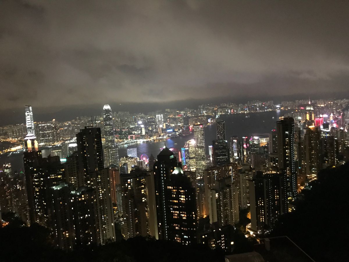 そのあと最後はビクトリアピークへ登って100万ドルの夜景を!見るぞ!と思いましたが、雨のせいで雲がかかって真っ白、、、残念でした。
