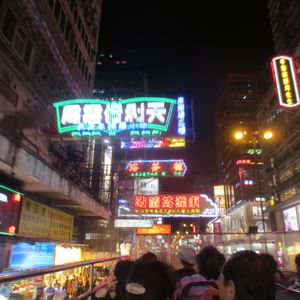 何度か訪れた香港ですが、オープントップバスに乗るのは初めてです。看板が迫りネオンが輝きこれぞ香港を感じました。