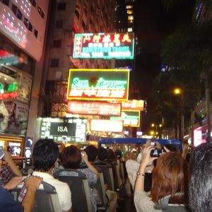 香港へは3回旅行で行きました。そのうち、今年と3年前と、二回オープントップバスに乗りました。一回目は友人と、二回目は母親とです。香港ならではのネオンの輝きが、とても素晴らしく、二階建てバスなので、街を歩く人々を上から見て、なんだかすごい身分になった感じ(笑)バスからの眺めは綺麗です。もう少し欲を言えば、バスから降りて女人街散策を30分とありますがほとんどの人はバスに(送迎用の普通車ですが)戻らず、散策を楽しみます。が、が、添乗員によっては、宿泊先のホテルへ戻る地下鉄のモンコックの駅への行き方の説明が不足し、客からクレームを受けている。確かに・・・あんな所に降ろされて、自力でホテルまで帰るのは、なかには難しいひともいるでしょう。ですから、必ずガイドマップを持参すること。添乗員にモンコックの駅までの地図を描いてもらうこと。これが大切です。
