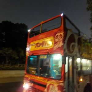 オープントップバスは夏は昼間に乗るには暑く、夕方からの日差しが弱まった方が快適ですし、看板は点灯してからの方がキレイでした。