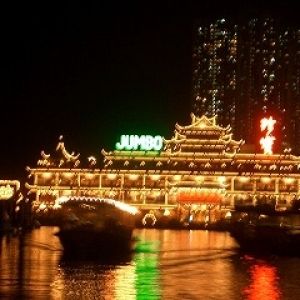 GW中でしたが、参加者は3組でジャンボ・キングダムへの参加は2組で、添乗員さんに大変よく面倒を見ていただけました。ツアーに参加したおかげで1時間以上並ぶ長蛇の列のピークトラム乗り場を、列の横をスイスイ通ってトラムに乗れたのは優越感!時間を無駄にせずに嬉しいです。100万ドルの夜景はキレイでしたが、ちょっと曇っていて残念でした。それでも香港に来たからには1度は見たい景色を堪能できました。アバディーンに移動し、憧れのキラキラというよりギラギラのジャンボ・キングダムにテンションもあがります。食事は2組4名でしたが、残してしまうほどのボリュームでした。(スタンダードの食事で十分でした)