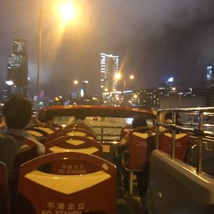 ビクトリアピークはガスって上からは見れませんでしたが 少し下がったところでバスを止めて夜景が見えて綺麗でした。夜の街をオープントップバスで走るのは、気持ちよかったです。もう少しスピードが出ていたらもっと面白かったかも(^o^)