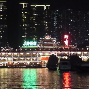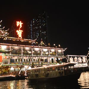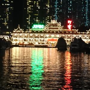 大混雑のピークトラムを優先搭乗で上りビクトリアピークからの夜景を堪能した後はきらびやかなネオンに輝く船上レストランへ。料理が少ないのは気になりましたが、この景色だけで満足でした。