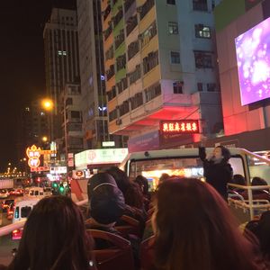 オープントップバスは夜風が心地良く、香港の街中を走っていても高いところから見下ろせるので気持ちいいですね!多少の渋滞は逆にシャッターチャンスです。