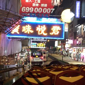 海鮮料理のお店は見た目が少し地元の方じゃないと入りにくいお店ですっごく美味しかったです♬海鮮は表の水槽で泳いでいるホタテ、エビ(一人3尾)、マテ貝など、ものすごく新鮮でした。何が出るかはその日により異なる様でお値段は時価だそうです。壺に入ったスープも格別、他にも香港の有名なお料理がたくさんでお腹いーっぱいになります。烏龍茶すごく濃く、途中でお湯で割りながら飲む地元式でした。この夕食だけでもツアー料金に匹敵!さらに、地元の路線バスに乗り、移動したり路地を歩いたり一歩深い観光になりました。オープントップバスはすごい迫力で街中を駆け巡り、お店の看板スレスレとスピードのワクワク感が楽しめました。絶対乗らなきゃ損です‼︎バスからの夜景は流れる紙芝居の様にどんどん移り変わり、夜の街に魅了されます。ナイトマーケットはネオンに輝く看板に、屋台がひしめきあっていました。色々なものがたくさん並べられ見ながら歩くだけでも楽しかったです。男人街もお店を楽しめる時間がありました。