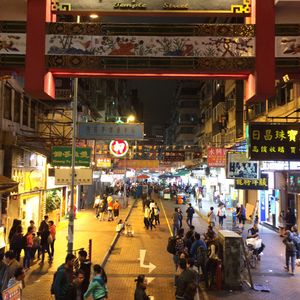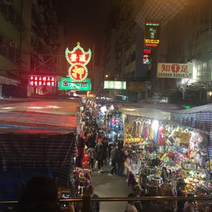 その後、尖沙咀に戻ってオープントップバスに乗り、一旦九龍の東側外周を往復して香港島の夜景を堪能し、ネイザンロードを北上して女人街へ向かいました。