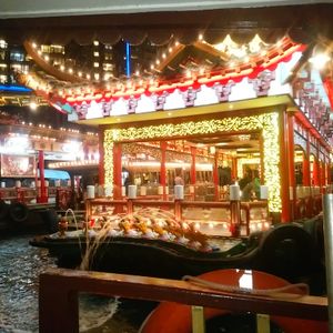 水上レストランでも美味しい食事を頂けました。水上なので、船は動きながら食事をするのかなと思いましたが、そうではなかったです。