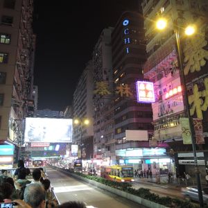 まずはバスに乗り込み,九龍半島から香港島のビル群の夜景等を見た後は,ネイザンロードの看板夜景を見ながら,旺角へ.2階建てバスの2階のみを使い,また適所でバスを止めてもらえたので,写真を撮影することもできました.