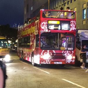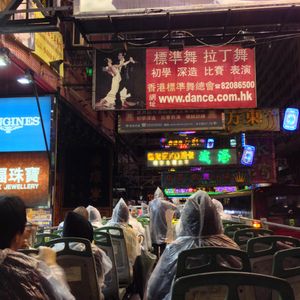 これは楽しいです!もともと狭い街中の道を他のバスや車と走っているだけでも香港らしいところをオープントップでネオンのすぐ下を通り抜け、構想ビルを見上げるのはイイですね!隣のバスが触れそうです(気がします)。