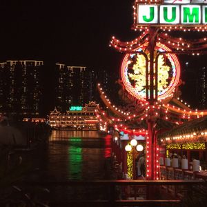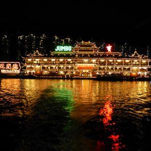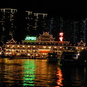その後アバディーンの水上レストランの夜景を鑑賞しましたが、こちらは天候に左右されず見ごたえのあるものでした。撮影時間が10分ほどあったので、いろいろな写真を撮ることができました。