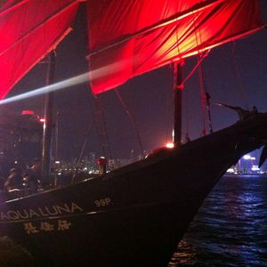 The Aqua Luna turned slow in the middle of harbour when we were enjoying the show, and some music was playing along the show.