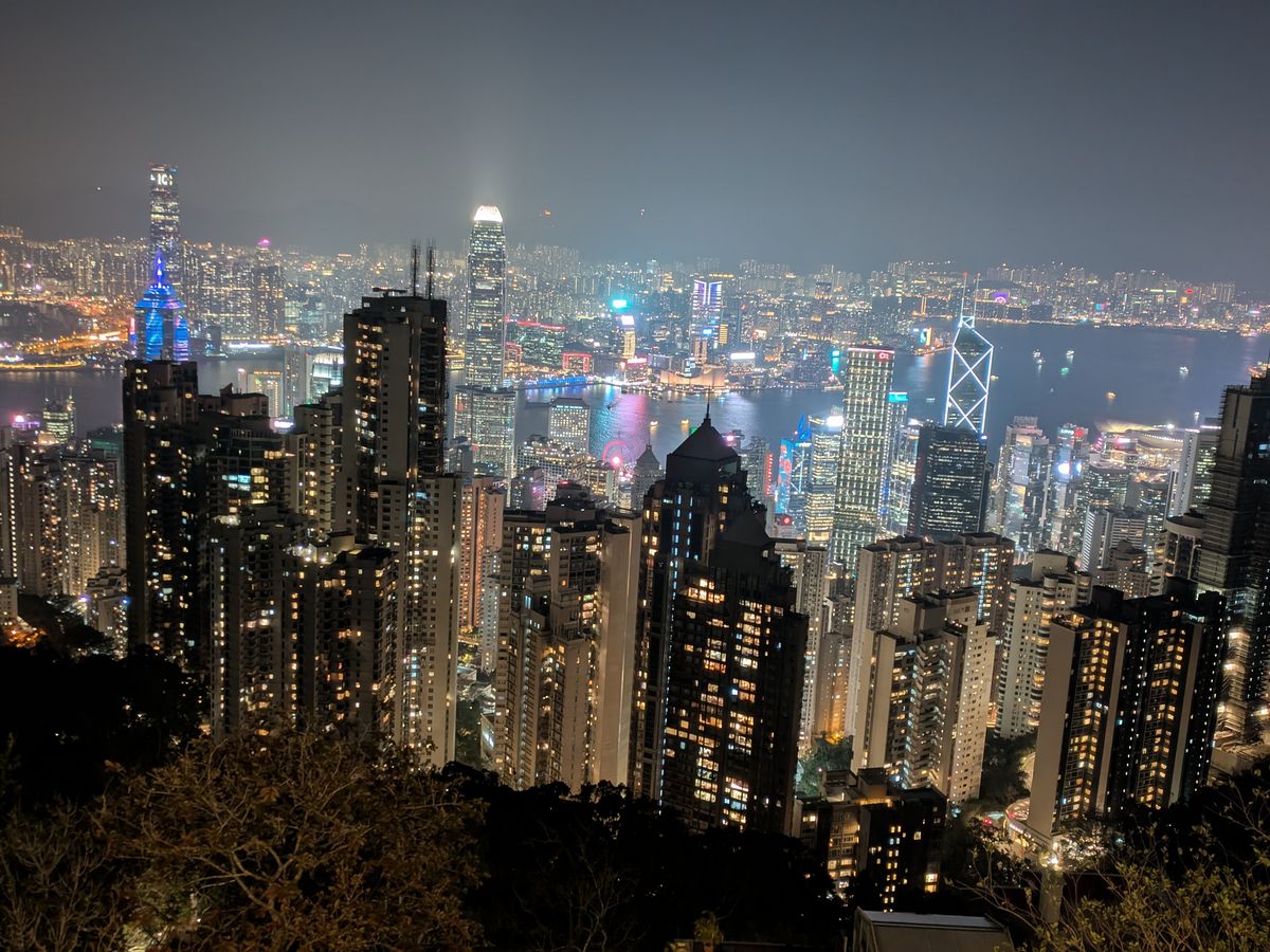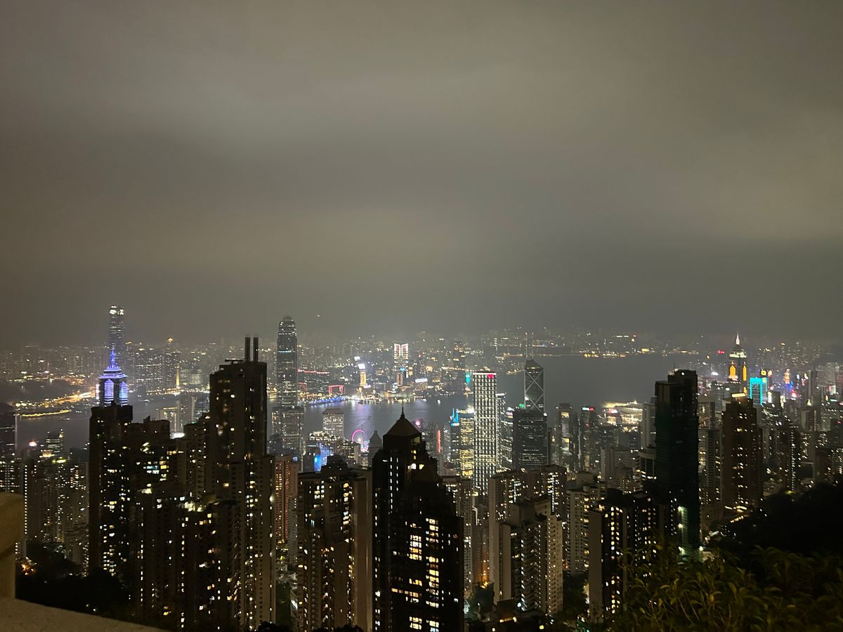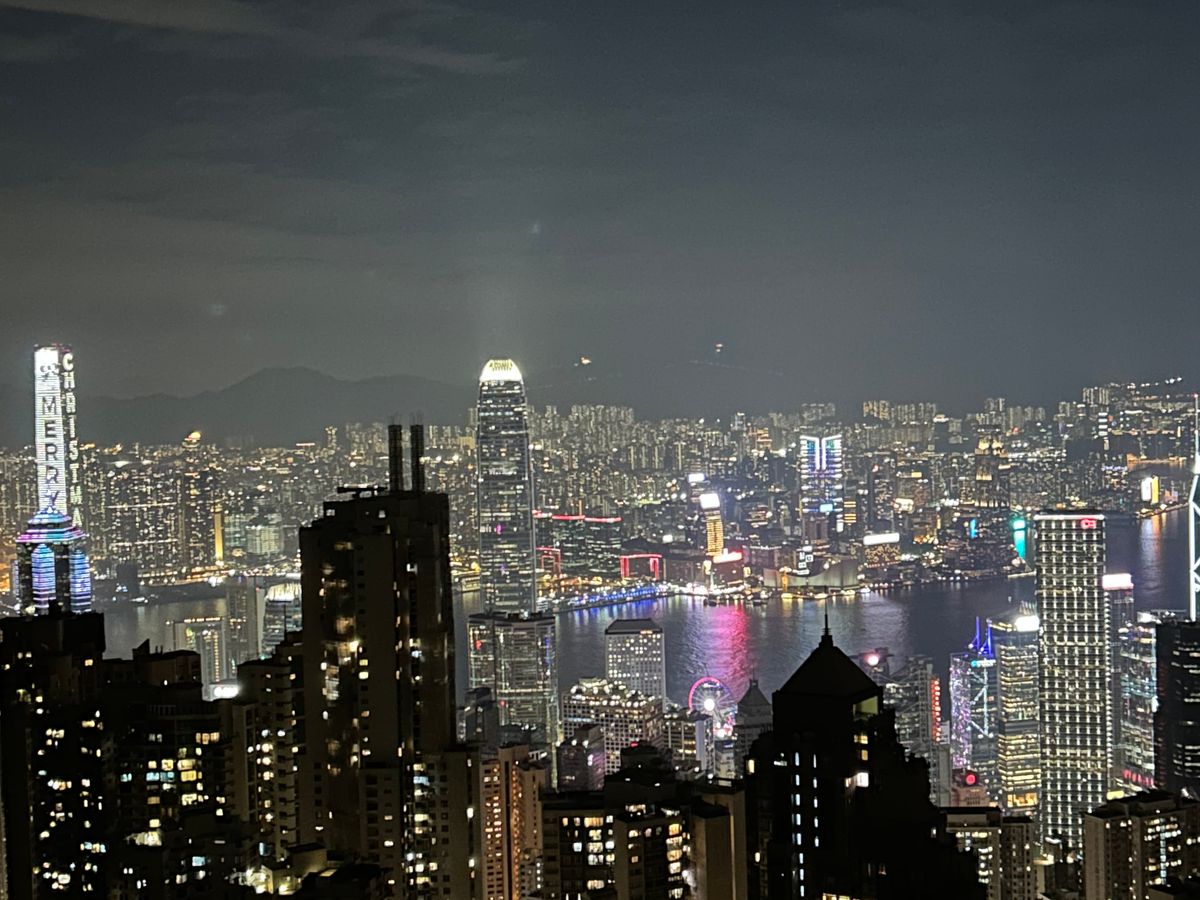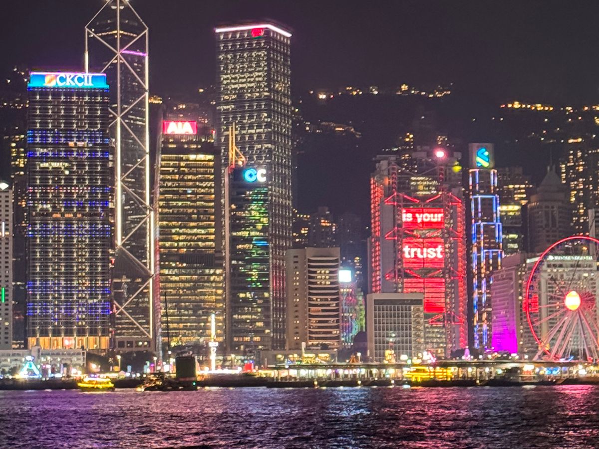 ビクトリア・ハーバーでシンフォニー・オブ・ライツを見てから、ビクトリアピークへフェリーで移動しました。