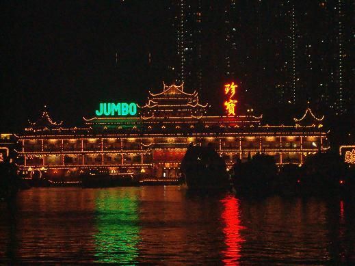 会社仲間と利用しました。以前も夜景は見に行ったのですが、ピークトラムではなくバスでした。今回混雑する人を横目に、ピークトラムに乗車したのですが、上での夜景があまり天候に優れず良く見れなかった事もあり、ピークトラムから見た夜景が一番でした。ただ、良く見える位置はすぐに埋まるため、注意が必要です。ガイドさんに良く見える位置を事前に確認しておくことをおすすめします。あと、「ジャンボ」は以前よりあまり良い評判は聞いていなかったのですが、適当なレストランに行くよりはよっぽど美味しいし、何より船でレストランへ行く雰囲気はそこで食べる人しか味わませんので、ぜひ一度は利用してみてください。