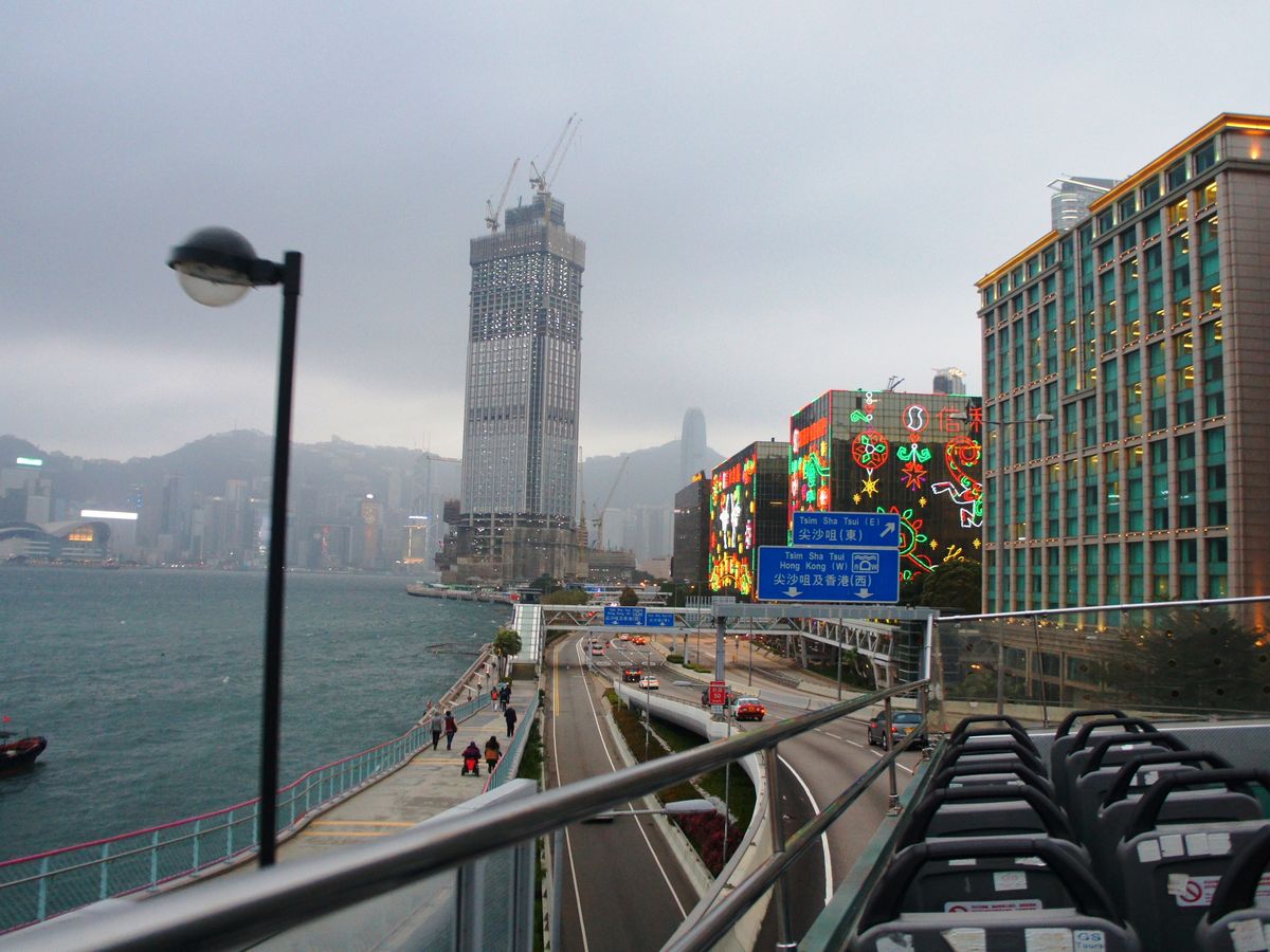 私達は途中で別のバスに乗り、ヴィクトリアピークへ移動したのですが、屋根なしバスはあまり迫力がなく、もっと看板が近いところを走ってくれるのかと期待していただけに少し残念でした。