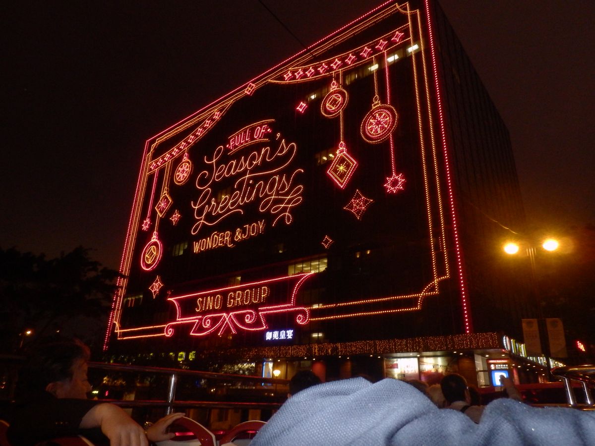 11月末の香港、夜はやや冷たく、オープントップバスも風を切って走れば、そりゃ寒い。