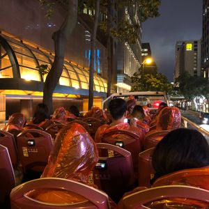 ゴールデンウィーク真っ只中のツアーで、激混みトラムに乗れずその点は残念でしたが、その分山頂から綺麗な夜景が充分見られたので満足。オープントップバスは、観光中に小雨模様となりましたが、カッパが用意されておりウォータースライダーのようで迫力満点。大満足でした。バスの最前列に有料予約されて座っていた方は、前面の窓が雨で見ずらかったようで可哀想でした。オープントップバスの席は後方がオススメです。色々アクシデントありましたが、それもツアーの楽しみです。解散は、女人街で下車、雑貨の露店を散策して地下鉄でホテル戻り。地下鉄駅の徒歩圏内のホテルを予約するのは、渋滞が激しい香港では必須です。