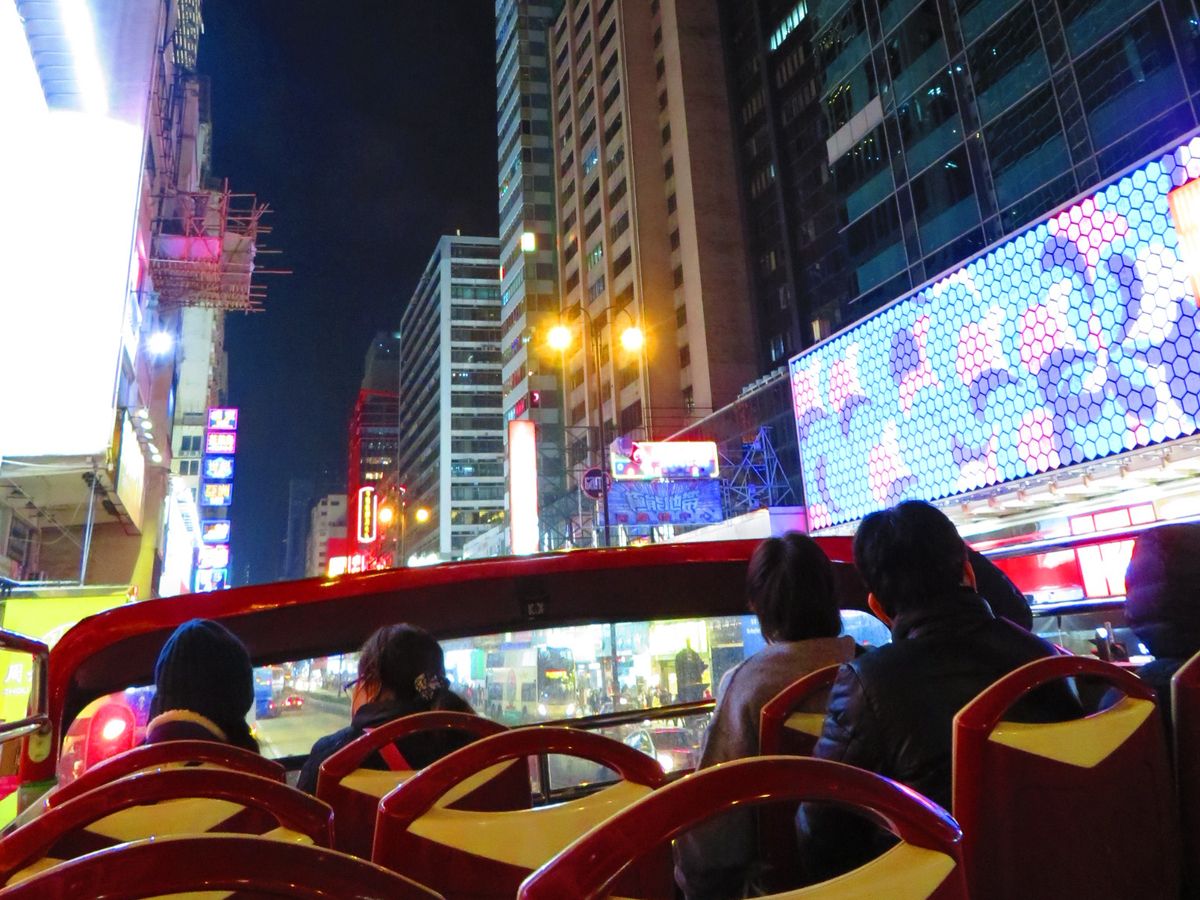 はじめての香港旅行だったので夜の香港観光は欠かせないということでこちらでオープントップバスを予約しました。座席は自由席だったので、早めに到着しておくことをおすすめします。