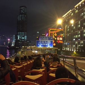 ビクトリアピークからの夜景とオープントップバスに乗って市内観光のツアーに参加しました。トラムはとても混んでいましたが、ツアーということでスムーズに乗れてよかったです。オープントップバスは最高です。開放的、スリリングで、期待以上でした。ガイドの方も面白くて一生懸命日本語でガイドしてくれました。もう少しゆっくり話していただけたらもっとよかったと思います。