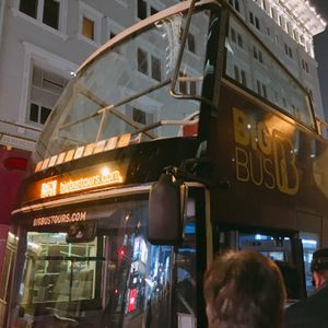 11月末の香港、夜はやや冷たく、オープントップバスも風を切って走れば、そりゃ寒い。