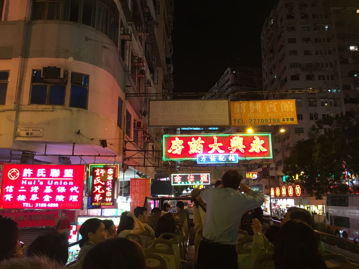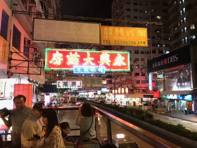 香港には十数回行ってますが、オープントップバスでの観光は初めて。昔は看板もたくさんあり、そのつもりで行ったら看板は3戸、え、何々昔の看板の下をくぐるツアーじゃないの?