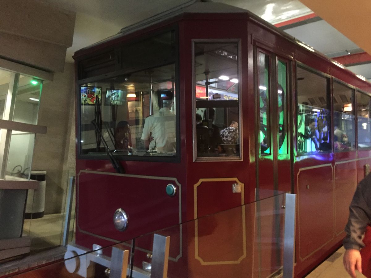 乗り場は、お祭り並みの人込みです。優先トラムでしたが、乗車まで50分ほど並んだでしょうか。私たちは、車内で立っていたのですが、とても急斜面を上るので、それはそれで楽しかったです。
