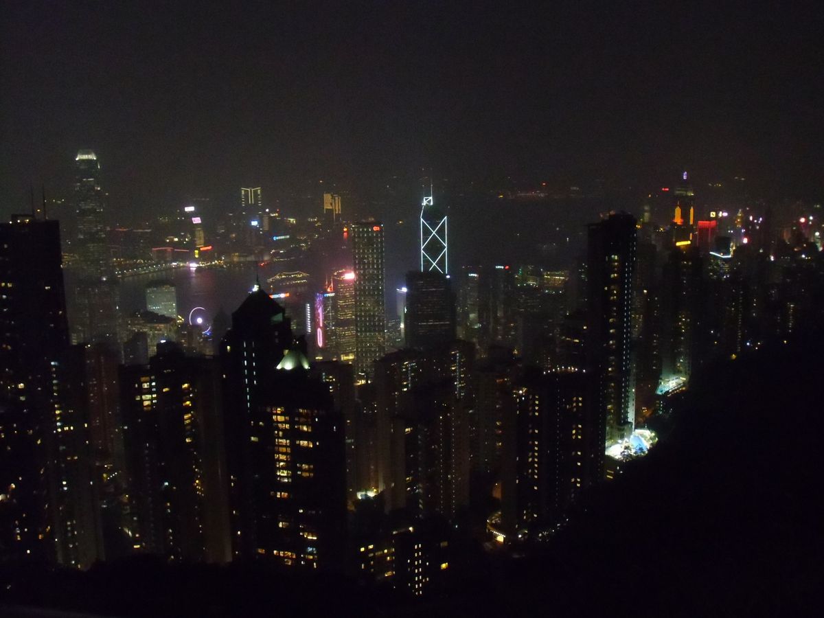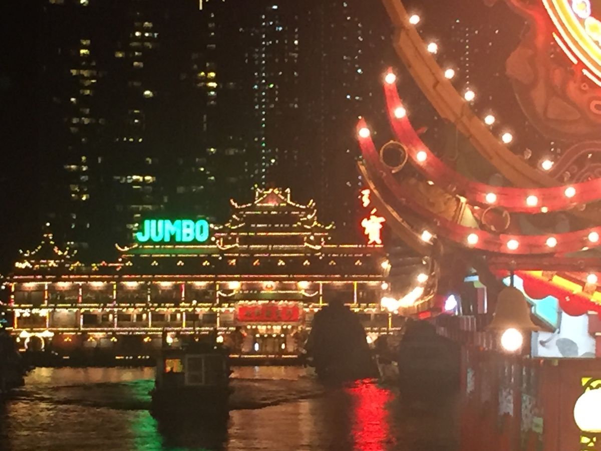 最初の観光地のビクトリアピークは、ピークトラム乗車客の超長蛇の列にビックリ!!でも、このツアーの参加者は優先的にトラムに乗車できるので約30分の待ち時間で済み、これだけでもこのツアーに申し込んだメリットがありました。山頂に着くとこれまたたくさんの人、人、人だらけでしたが眼下に広がる景色に感動しながら娘と写真を撮りまくりました。ガイドさんによると、この日の夜景は80万ドルだそうで、霧が多いこの時期にしたら遠くまで良く見えてラッキーでした。日没前から夜にかけての景色を小一時間ほど楽しんだあとは、アバディーンへ向かい水上レストランをバックに写真撮影。短い時間でしたが、ガイドさんも積極的に写真を撮ってくれました。その後、オープントップバスに乗り換えて夜の香港の街を小一時間ほどドライブし、私たちは宿泊先が近かったので最終目的地の女人街で下車解散しました。