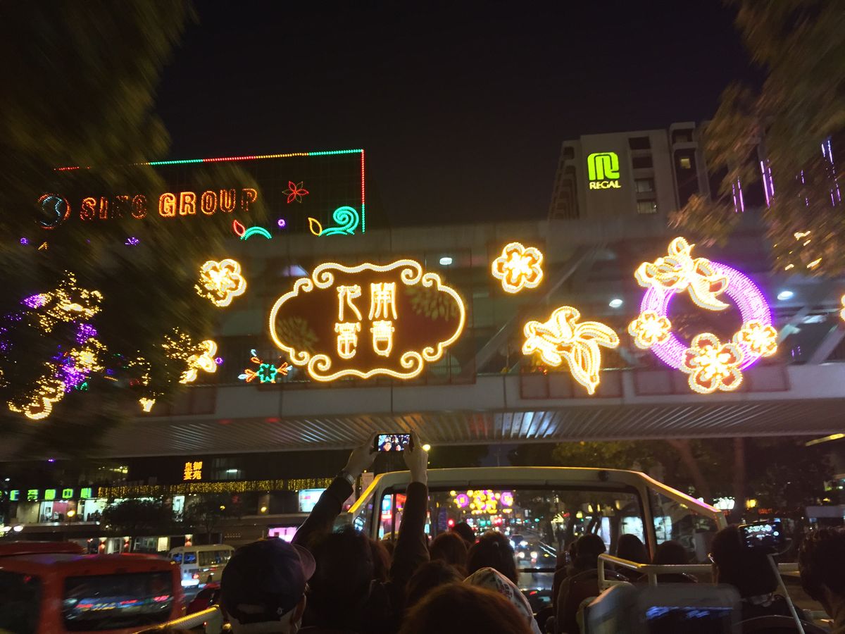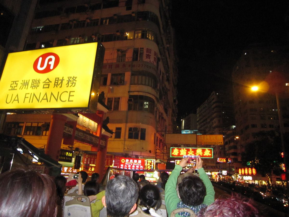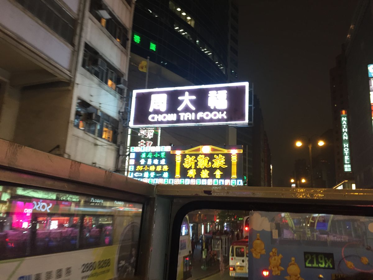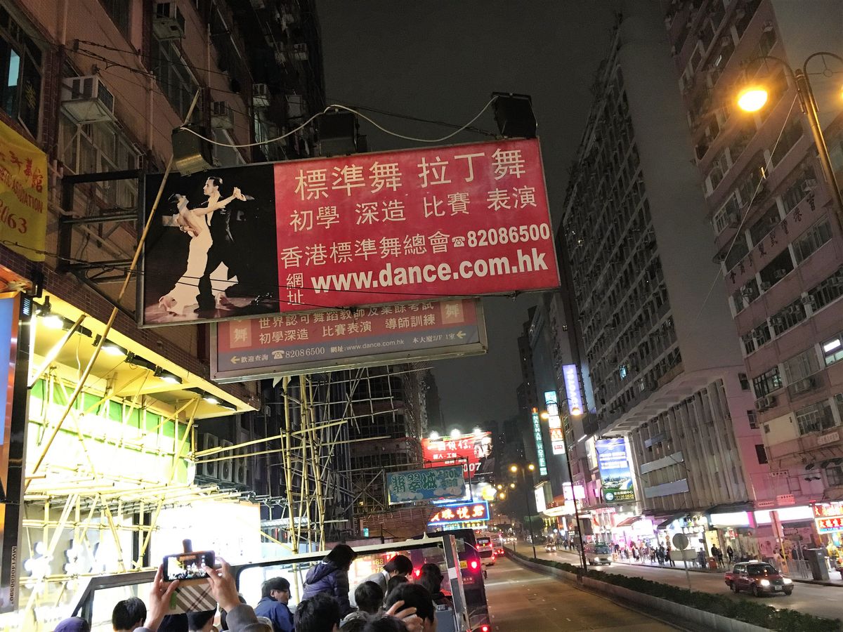 また、オープントップバスの方も、香港名物とも言える、街中での看板のせり出しのギリギリのところを通るのは圧巻でした。