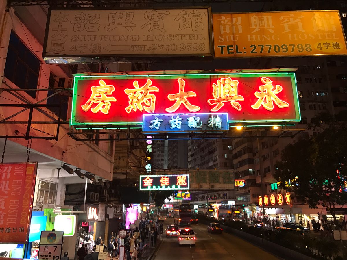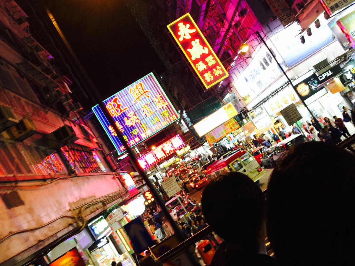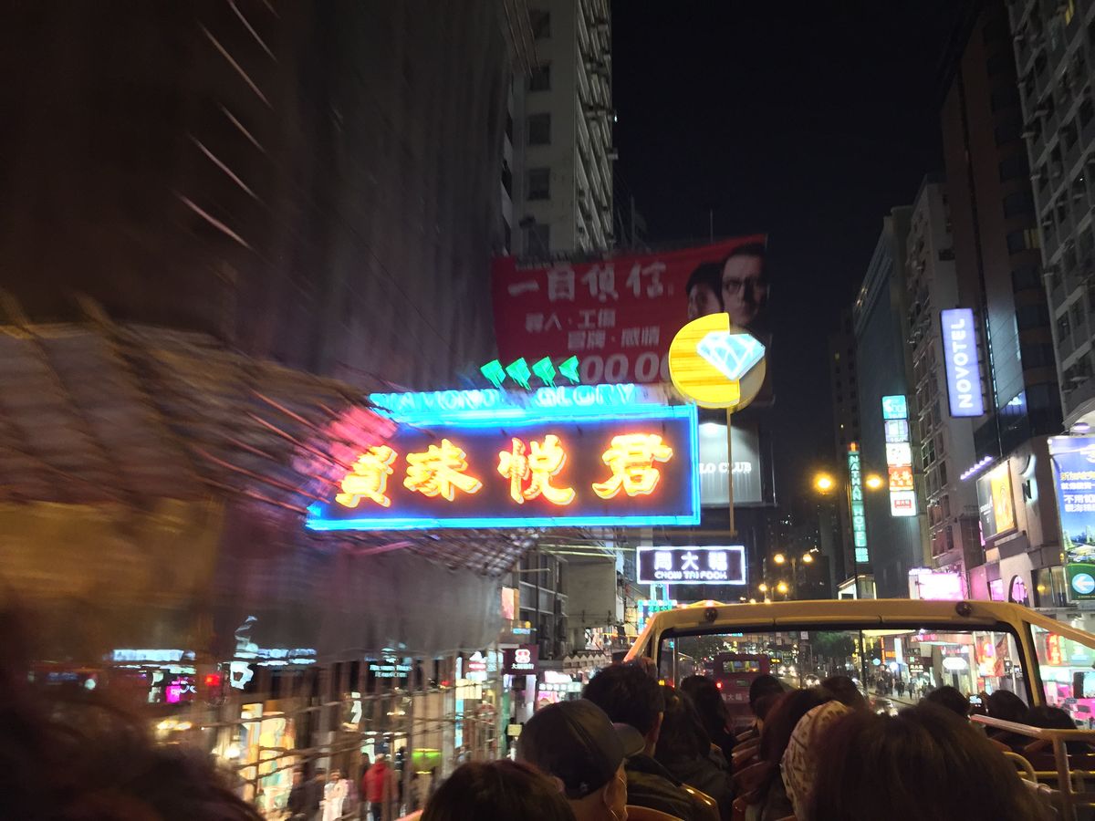 バス乗車時間は1時間程度と長くはありませんでしたが、香港といえば煌びやかなネオンの看板