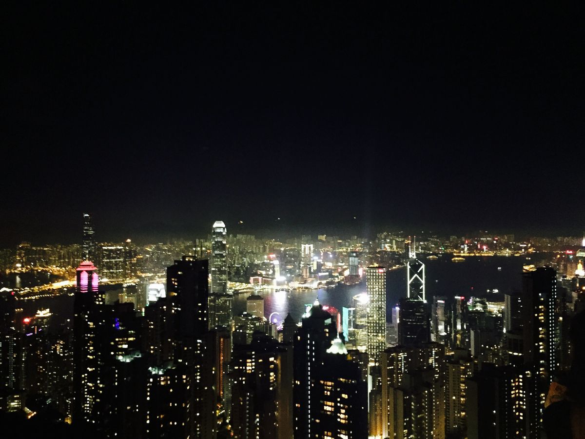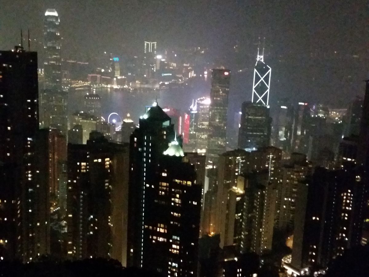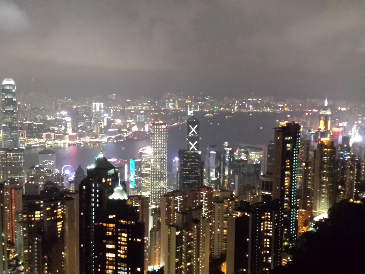 参加日は雨模様でしたが、ビクトリアピークについてからは雨は止み、しかも夜景がバッチリ見えました。