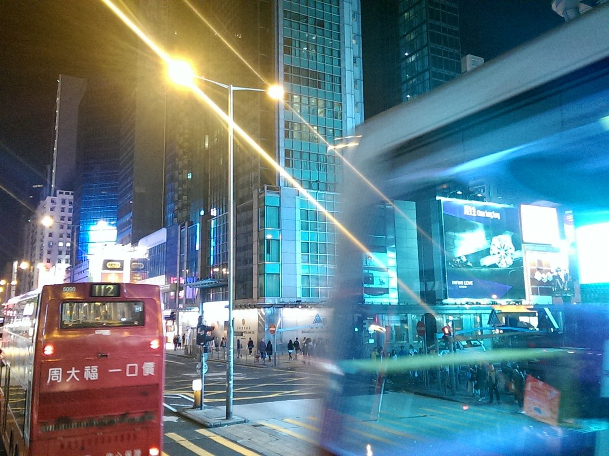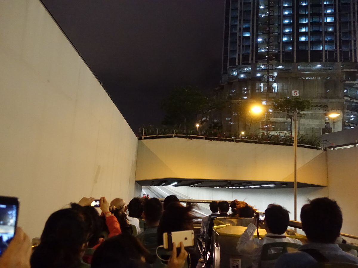 種を明かせば、2階建てのバスの屋根を取り払っただけで、トンネルの坂道をジェットコースターの乗りで下っていくだけなのですが、香港の夜景の街中の側面がよくわかって家族にも好評でした。