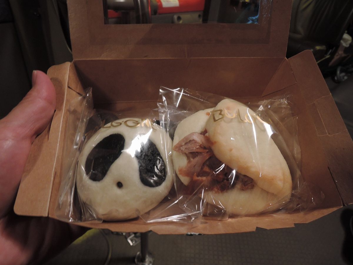 その後、バス内でプランにあったパンダパンと中華まんをおいしく頂きました。(山道を走るためちょうど良い量です。)