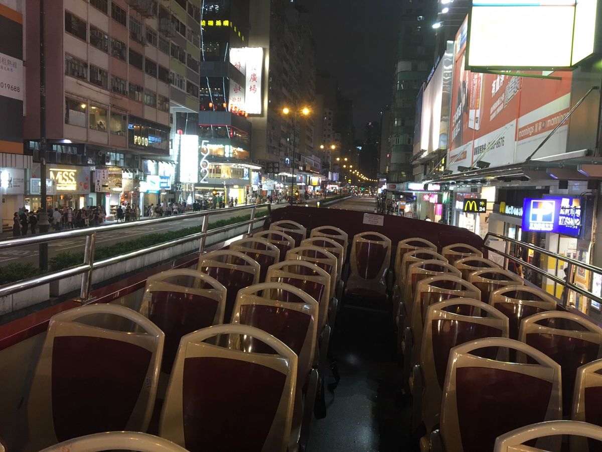 天気が悪い時期な中、この日は雲もなくいい日だとガイドさんが仰っていて、オープントップバスもスリルがあり、風もここちよくて最高でした。バスから見る夜景も本当に綺麗でまた乗りたいです。最後は女人街で降ろしてもらい(ほぼ降りてました)ナイトマーケットを楽しめました。