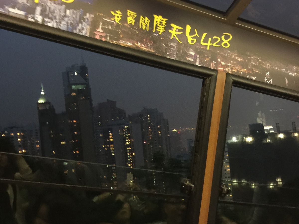 3月中旬に夫婦でツアーに参加しました。その日は昼にもビクトリアピークに登っていたのですが、その時はバスで上っていたので、ピークトラムで登れたのは別の楽しみがありました。その日は日曜日だったので、ガイドさんによると一般の方は2,3時間待たなければ乗れないそうですが、ツアーの優先パスにより1時間ほどで乗車できました。乗車時は並んでいた人たちが一度にドアに押し寄せるため、あっという間に席が埋まり立ち乗りになってしまいましたが、急こう配な斜面を結構な体感速度で走るためスリルを味わえる貴重な体験になりました。手すりにつかまっていないと転びそうになりましたがσ(^-^;)