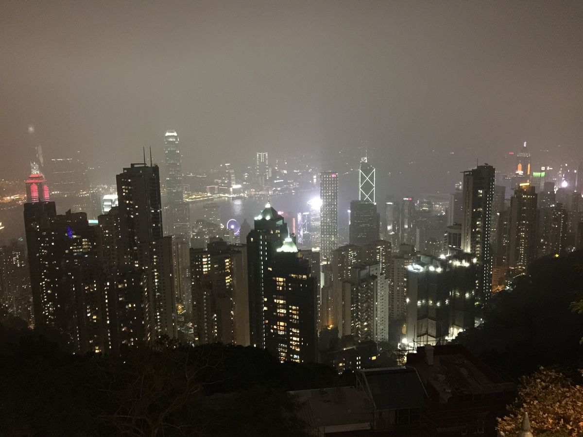 その日はあいにくの霧で、ビクトリアピークから市街地の夜景は全く見られず、ガイドさんも「0万ドルの夜景ですね!(失笑)」と参加者の私達を盛り上げようとしてくれましたが、楽しみにしていた分やはり残念でした。天気ばかりは運なのでしょうがないのですが、ガイドさんによると冬から春になる3月頃は一年で最も霧がかかりやすい時期のため、こういう霧がかかった景色(真っ白)になる日が多いとのことでした。(天気が良い日はもちろん素敵な景色が見られるそうです。)ただ、ピークからバスで下っている途中で、霧が晴れてバスの車窓から夜景が見えた時には、ツアー参加者の歓声が起こりました。道の途中だったので、バスが止まることはありませんでしたが、一瞬見られたあの綺麗な景色は忘れられません。