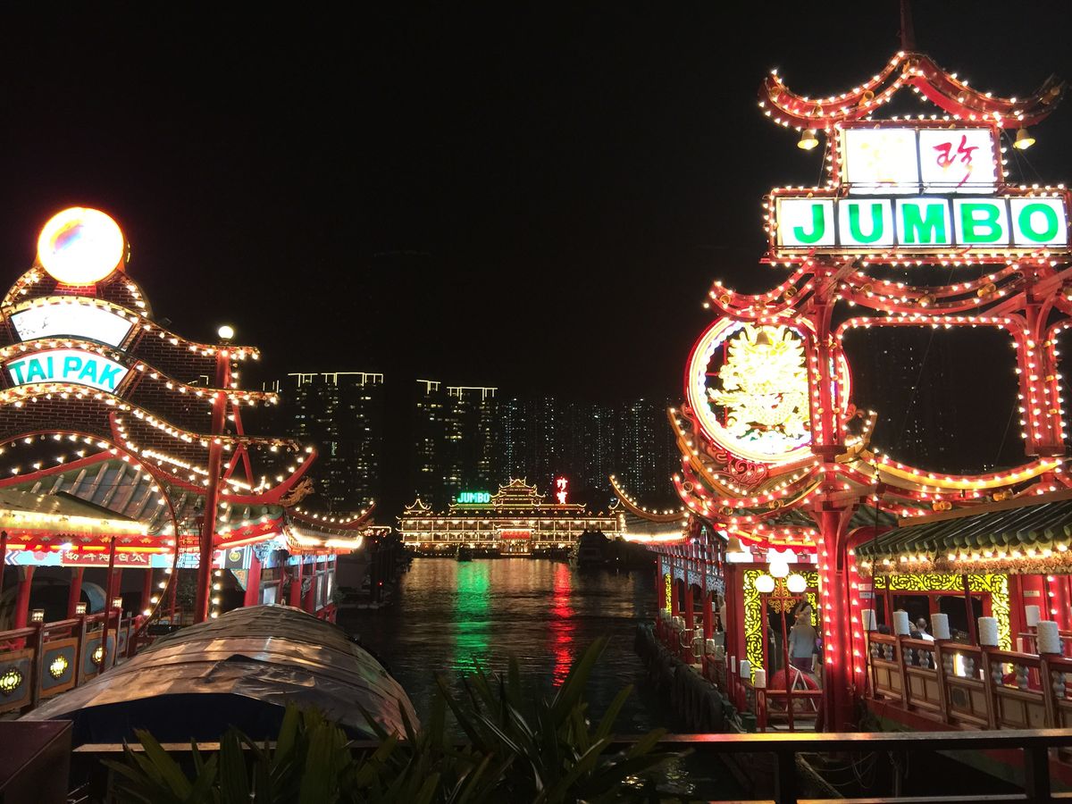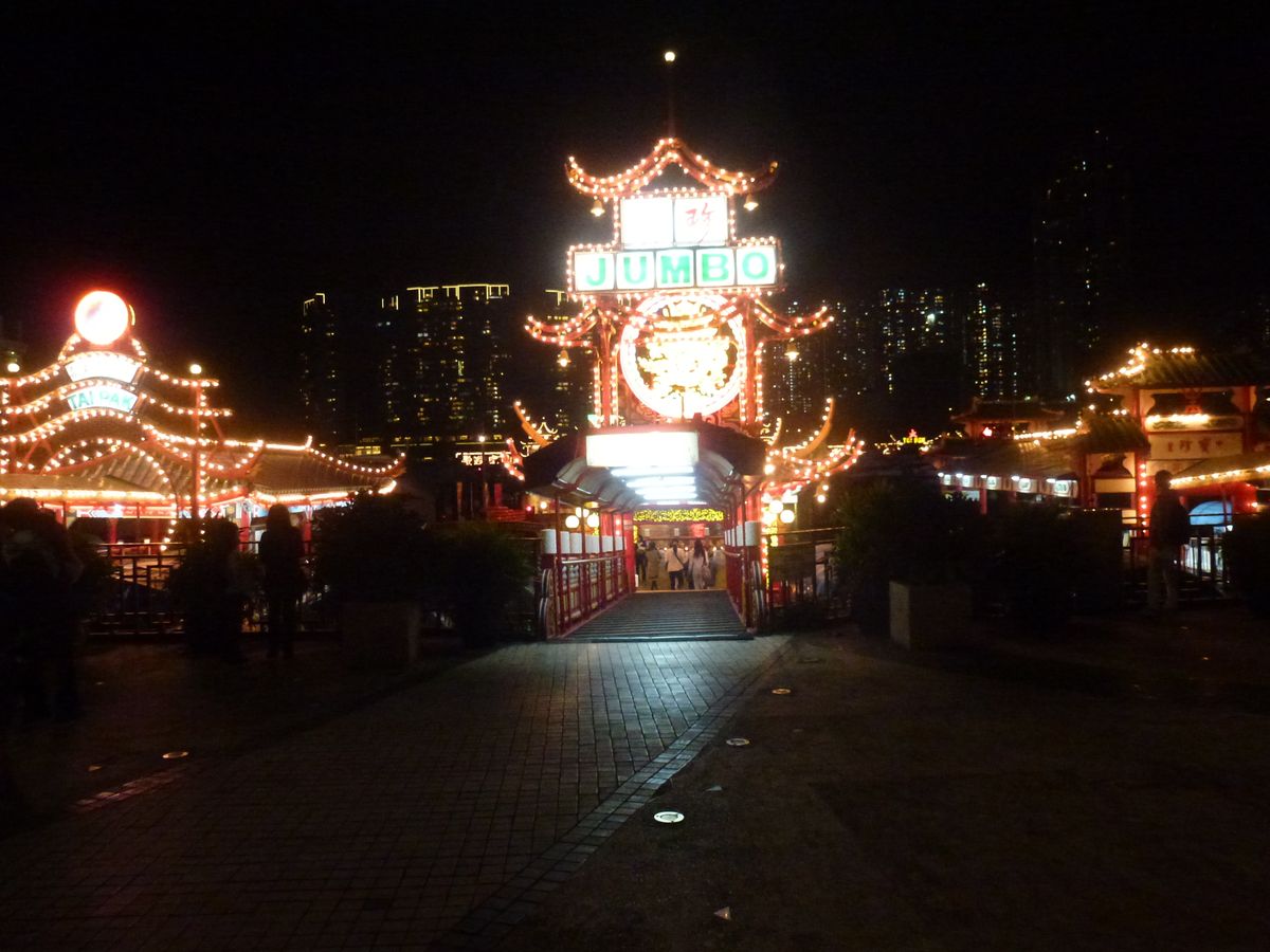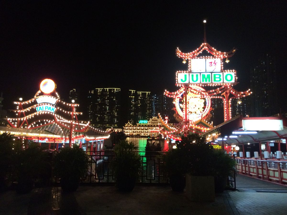 その後アバディーンの水上レストランの夜景を鑑賞しましたが、こちらは天候に左右されず見ごたえのあるものでした。撮影時間が10分ほどあったので、いろいろな写真を撮ることができました。