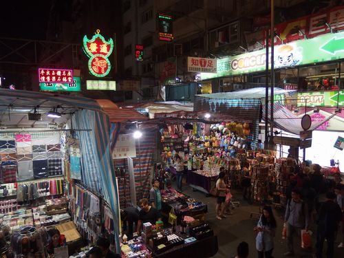 オーップントップバスには全ての方が2階に乗車して満席状態で出発しました。ジェットコースターのように風を切って走った後、ネオン街をたっぷりと駆け巡り、ガイドさんがグループごとに自分のカメラで写真撮影してくれました。女人街で降りたい人はここで解散。私たちもここで降りて、雑貨が立ち並ぶ市で値段交渉を楽しんで帰りました。