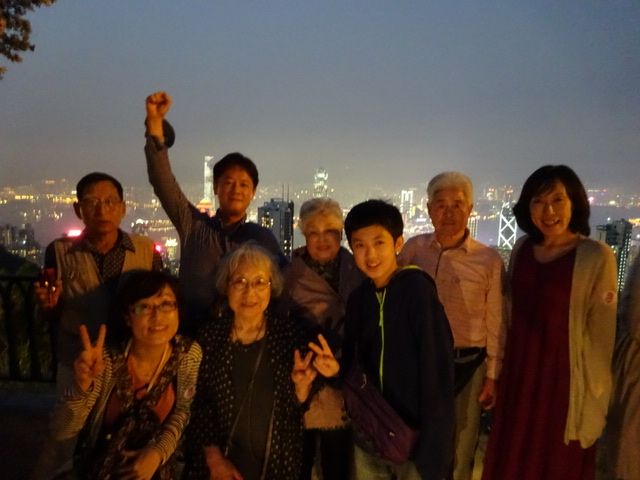 ・ビクトリアピークから100万ドルの夜景鑑賞:もやがかかっていましたが、夜景の美しさは堪能できました。有料展望台は予定に入っていなかったのですが、せっかくということで我が家はダッシュで有料展望台へ。滞在時間はほとんど取れませんでしたが、大勢の観光客の間から写真を撮って、またダッシュで集合場所へ(笑)。ちょっとヒヤヒヤしました。