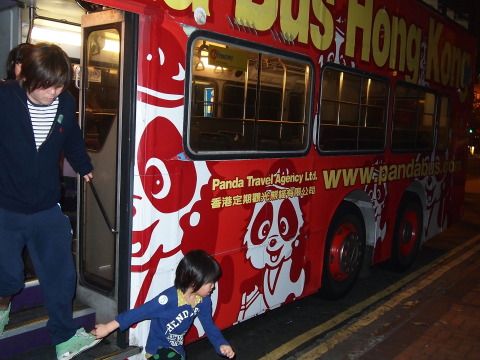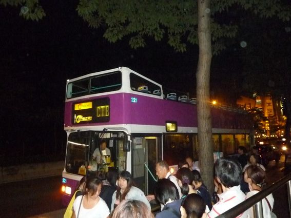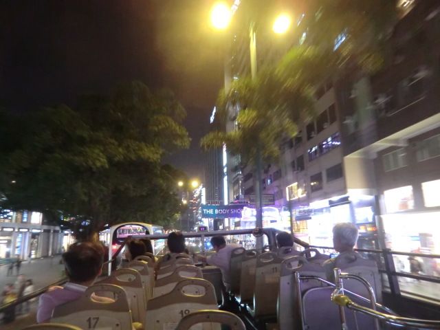 蒸し暑い香港の夜ですが、風を切って乗るオープントップバスは涼しく、気分爽快でした。