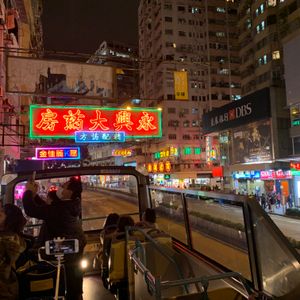 バスは対岸の香港島の高層ビルの夜景から始まり、ジェットコースターのようにトンネルをくぐり、後半は古き良き街のネオンを楽しむことができました。