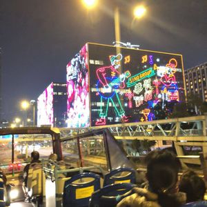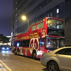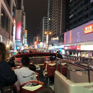 夕方に到着して、その日の夜にツアー参加しました。20時からのシンフォニーオブライツを見てから充分に間に合う集合時間と場所だったので、このツアーを選びました。オープントップバスなので、軽いジェットコースターのような感覚で楽しめます!旧正月の期間ということもあり、街が色とりどりの電飾で綺麗でした。日本語のガイドさんも一生懸命いろいろ話してくれるのですが、マイクのせいなのか街中の喧騒のせいなのか、ところどころ聞こえないところがあり、そこは少し惜しかったです。映画のロケ地も巡れますし、最後は女人街での解散も可能なので、旅行初日としてはとてもおすすめです。