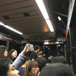 トラムの出入り口は前後2カ所なので、ホームについたら前方か後方で待っていたほうが早く乗れると思います。乗る際は押し合いへしあいでした。