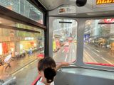 15年ぶりくらいの香港でオープントップバスのトンネルや看板のちょっとしたスリルを子ども達にも味わってもらいたかったけど、残念ながら看板は撤去されていました。でもトンネルの近さや下りでスピードを上げてくれる所、絶景で一旦停車して写真タイムを作ってくれる所は本当に良かった!帰りはバスを降りてサッと歩き始めたのでバスの写真が撮れなかった。慌てて乗らなくても良かったな、、トイレの場所も教えてくれたり、ガイドさんはとっても親切でした。こんなに楽しかった次の日に台風で飛行機が欠航になる事をこの時誰が予想しただろうか、、、
