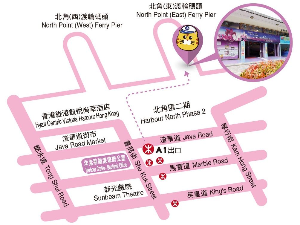 - 北角(ノースポイント)埠頭の場所は添付の地図をご参考ください。