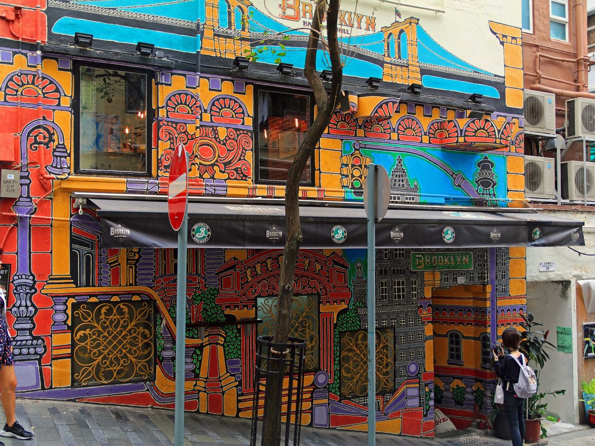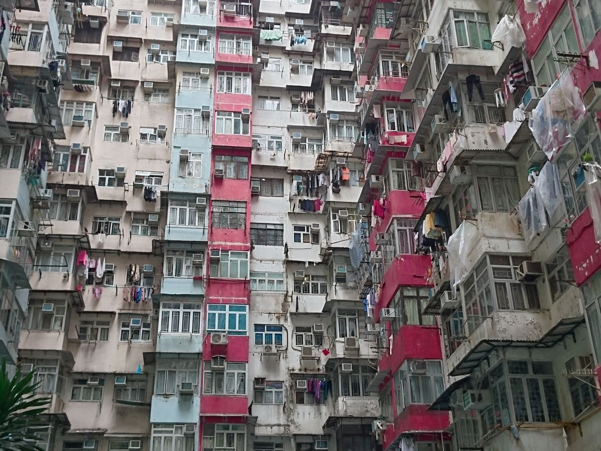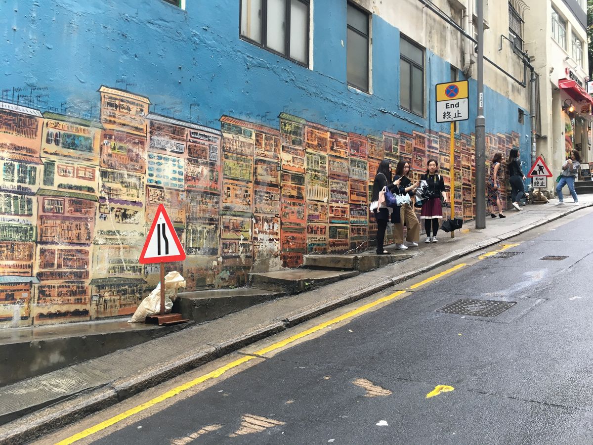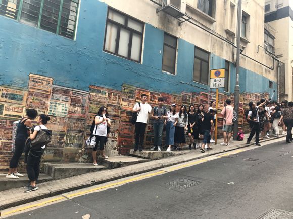 集合地点からトラムに乗り北角方面までまず移動。特にこの北角の市場の人通りの真ん中を通っていくトラムが、活気ある街らしくて気に入りました。次にモンスターマンションへ。ここも、入り口は小さく、個人で行くのは難度が高いかもしれませんが、ガイド付きなので簡単に行けます。次は地下鉄に乗ってセントラル付近まで。ヒルサイドエスカレーターに乗ったり、ソーホー地区のブロックアートを見ながら散策します。途中、昔の雰囲気を残すスタバや、ショッピングモールで休憩を入れながら3時間半程度。ガイドさんの話も面白くあっという間でした。