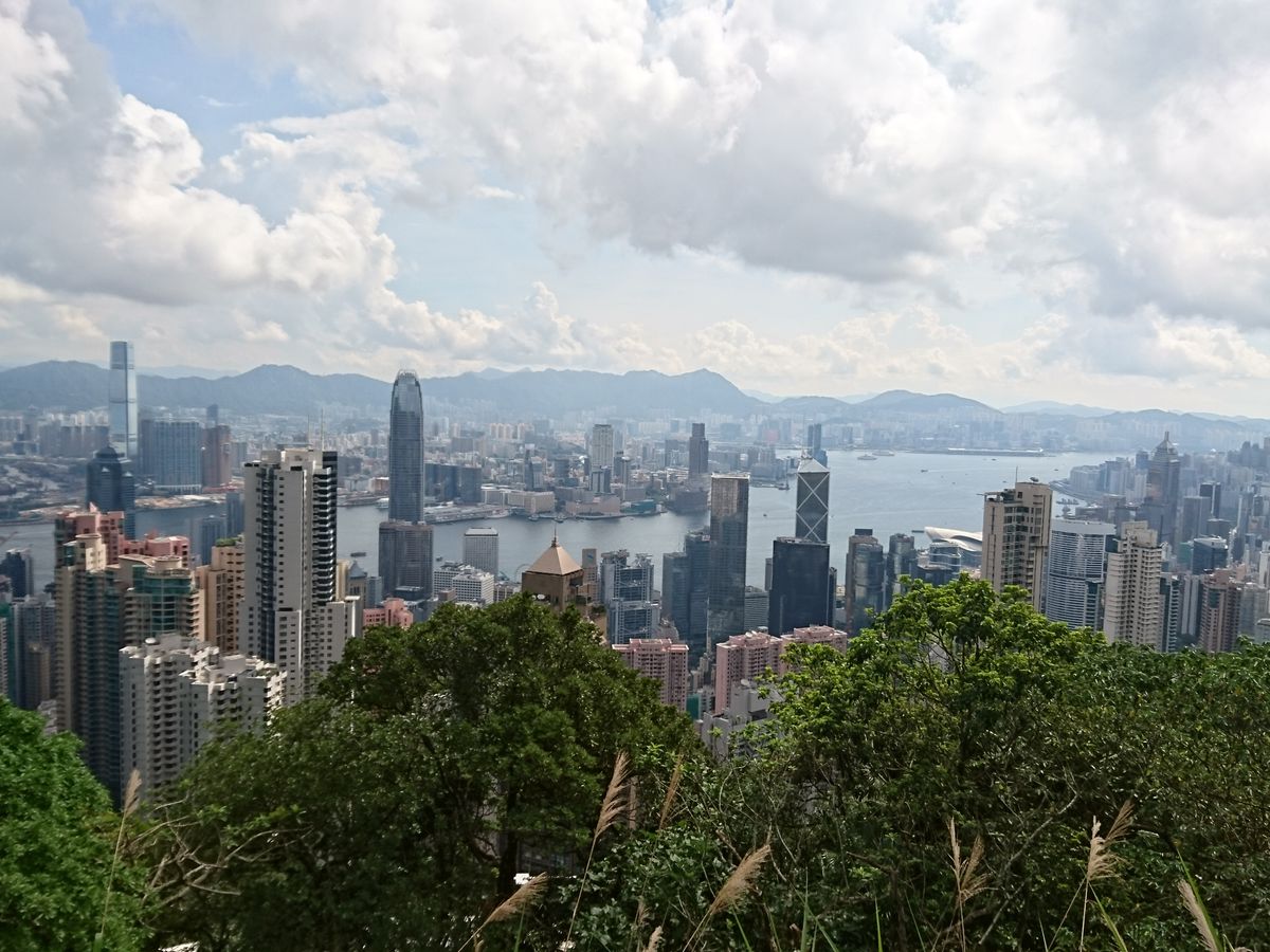 台風の影響で朝から雨が降っていましたが、ビクトリアピークの山頂に上った瞬間、雨が上がって素晴らしい景色を見ることができました。