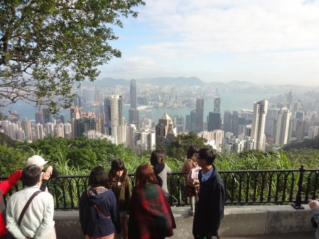 前日のビクトリアピークからの夜景は霧のため全く見えず残念でしたが、この日は山頂に上がっている間、偶然晴れて香港の摩天楼群を一望することができました。